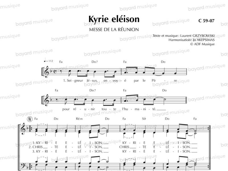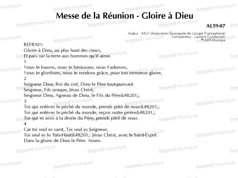 Messe de la Réunion : Gloire à Dieu / Saint, Saint, Saint le Seigneur / Gloire à toi qui étais mort / Agneau de Dieu.