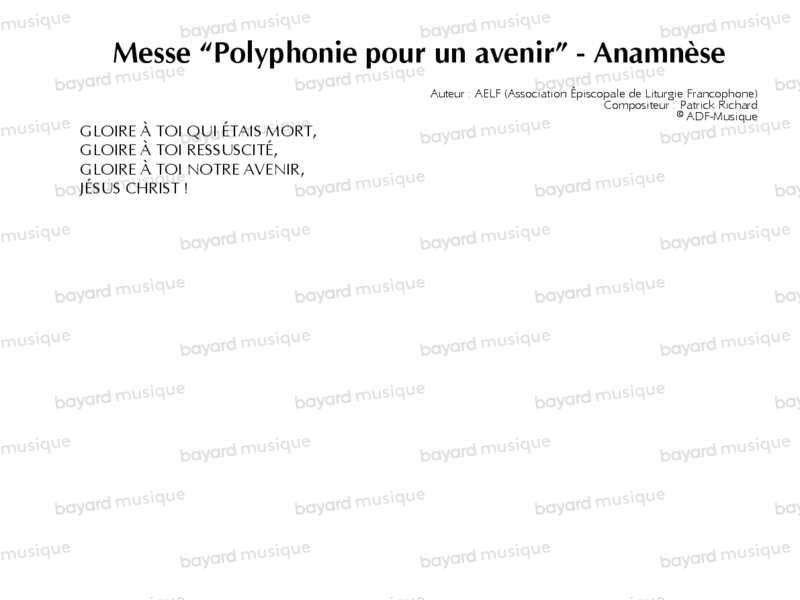 103. Messe Polyphonie pour un avenir - Anamnèse