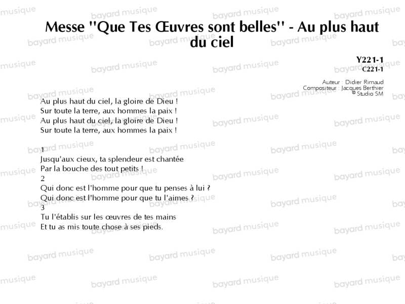 120. Messe Que tes œuvres sont belles - Au plus au du ciel