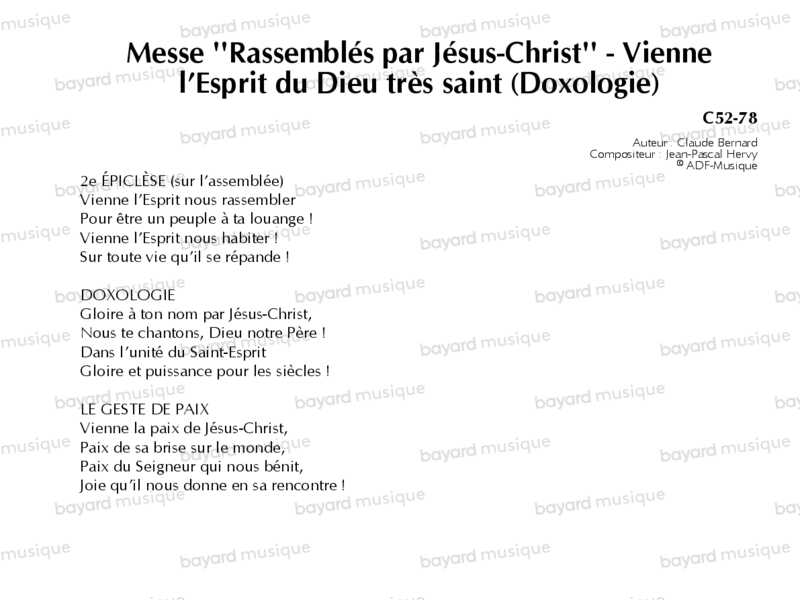 Messe Rassemblés par Jésus Christ - Doxologie -Vienne l’Esprit du Dieu très saint