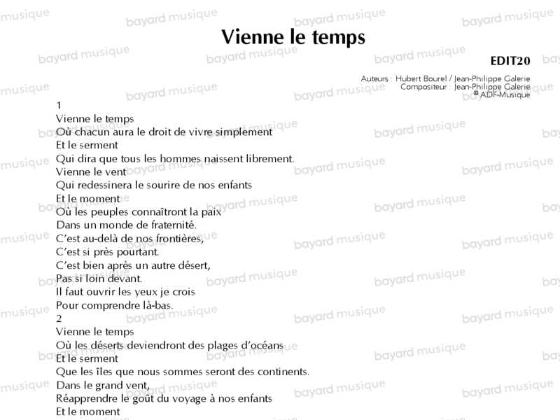 Interprété par Marie-Louise Valentin, Hubert Bourel et le chœur ADF.