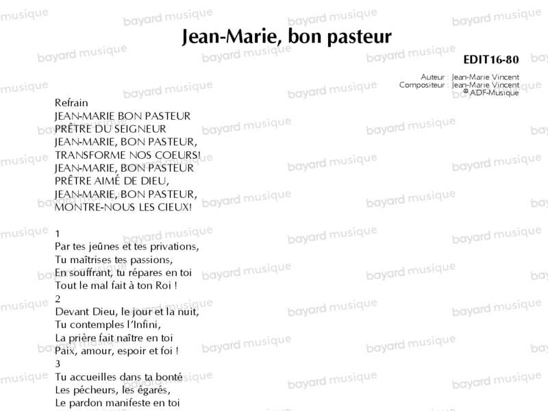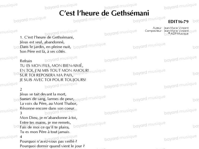 Interprété par Jean-Marie Vincent, Jean-Noël Daly et l'ensemble vocal “Terre d'Amour”.