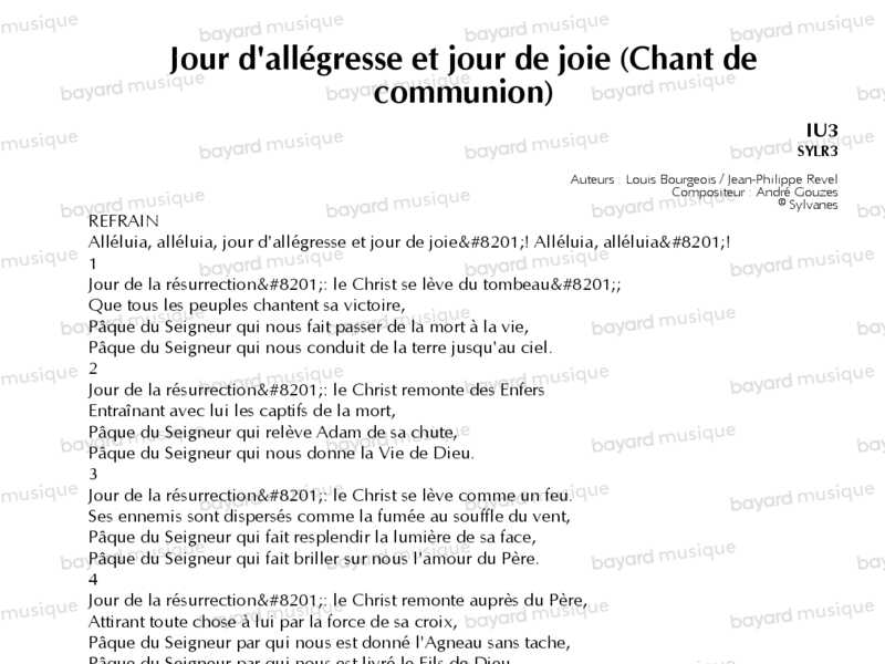 19. Jour d'allégresse et jour de joie - Chant de communion