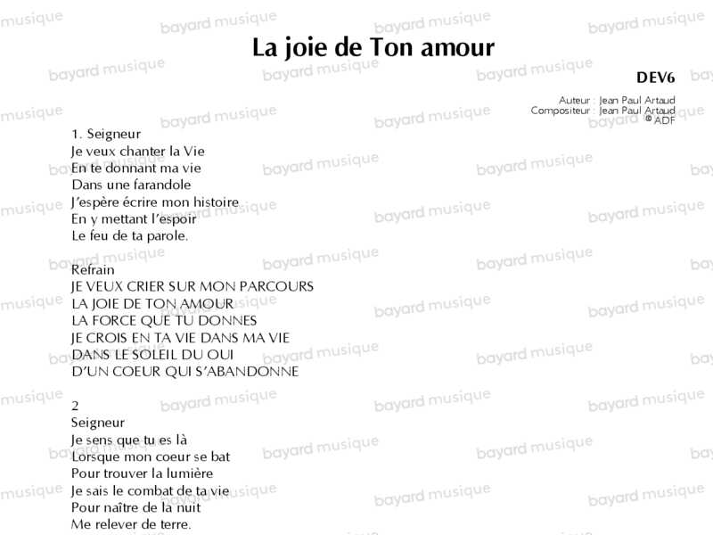 La joie de ton amour