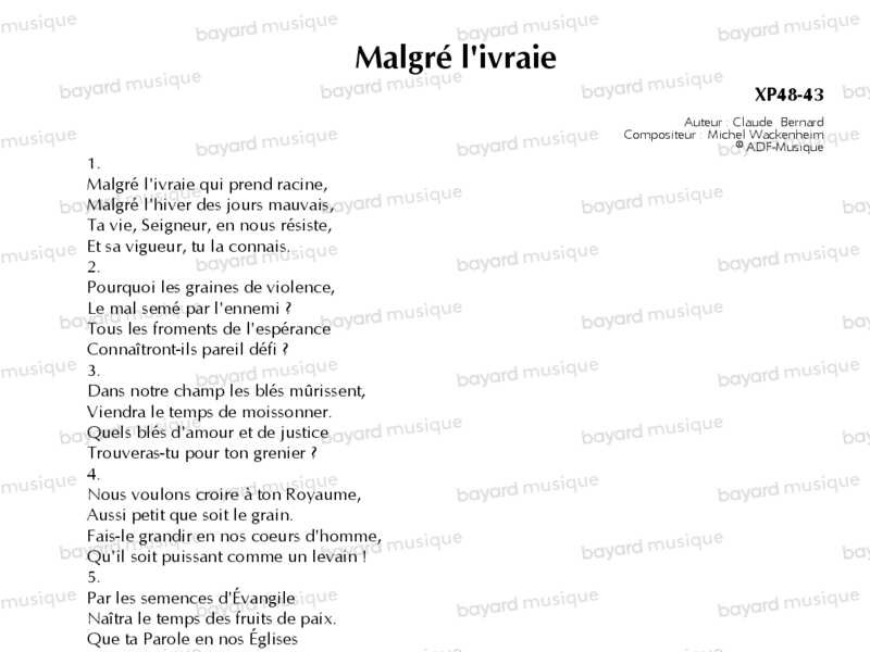 Interprété par Béatrice Gobin, Stéphane Audoin et l'ensemble vocal l'Alliance.