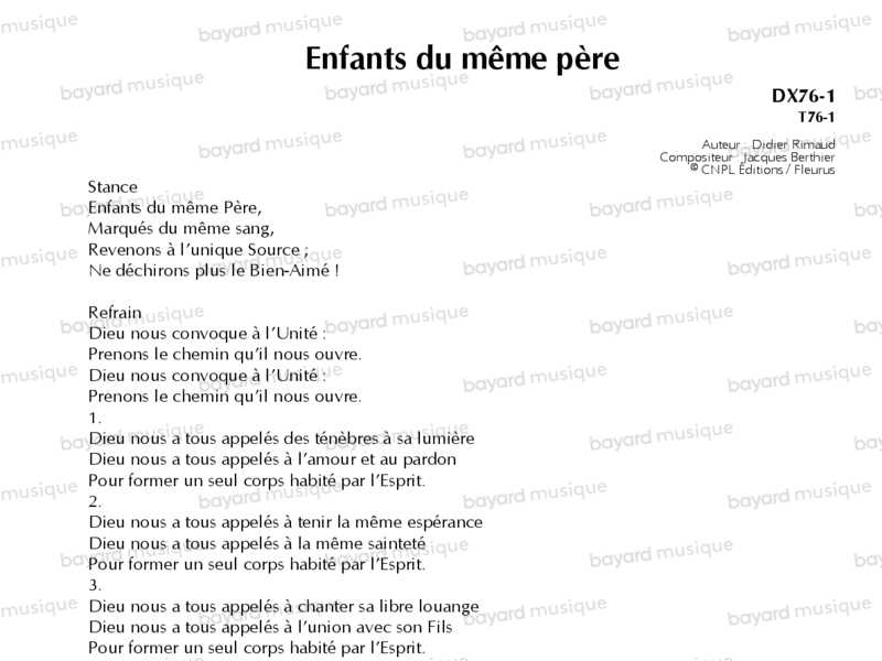 Interprété par Marcel Godard, Jean-François Duchamp, Emmanuel Magat et la maîtrise de la Primatiale de Lyon.