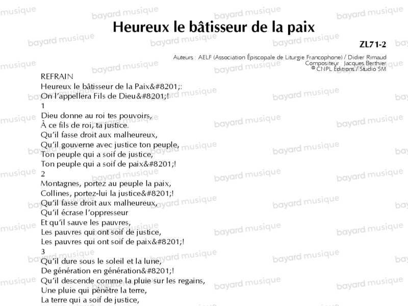 Interprété par les Petits Chanteurs de Lyon et la maîtrise de la primatial de Lyon.