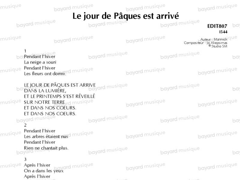 Interprété par Mannick, Jo Akepsimas et le chœur des sœurs de l'Assomption de Paris.