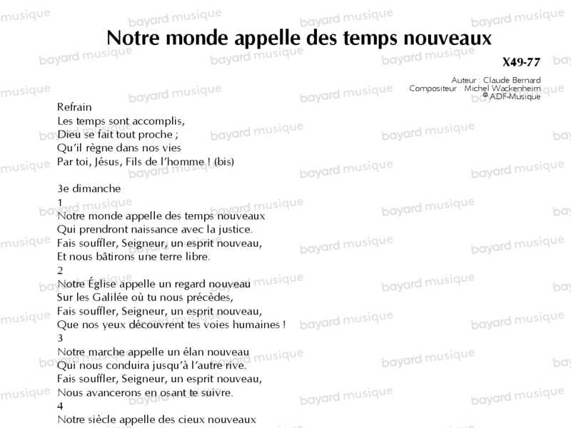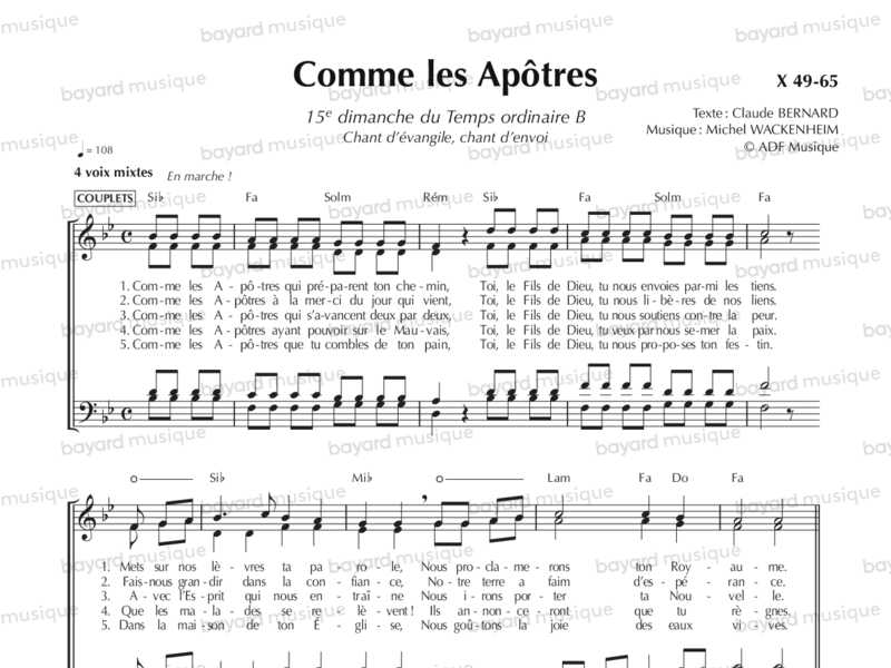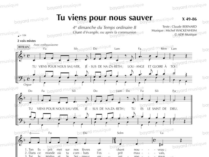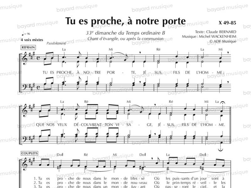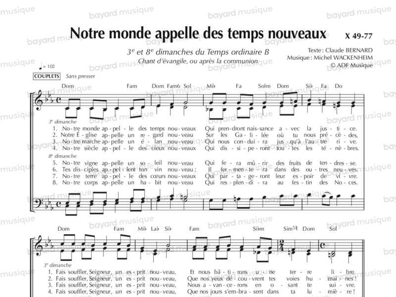 Partition pour le 30e dimanche du Temps ordinaire B (correspond à l'enregistrement de l'album "Le temps du royaume B")