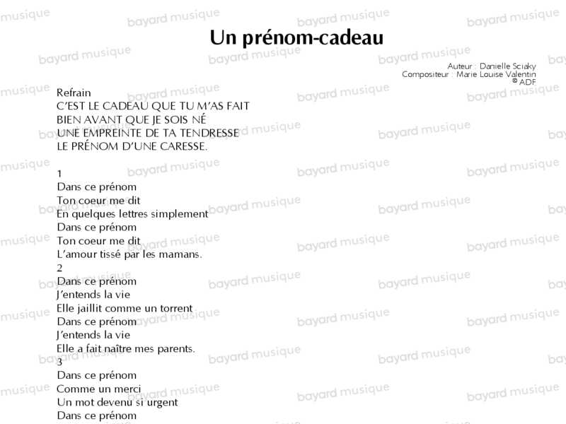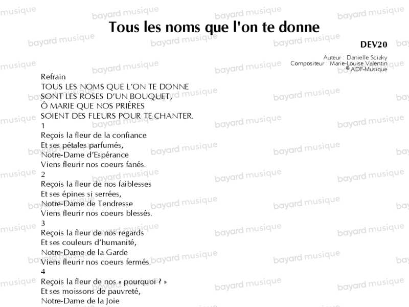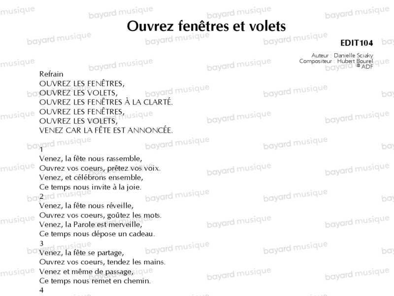 Interprété par Danielle Sciaky, Marie-Louise Valentin, Hubert Bourel et le chœur ADF.