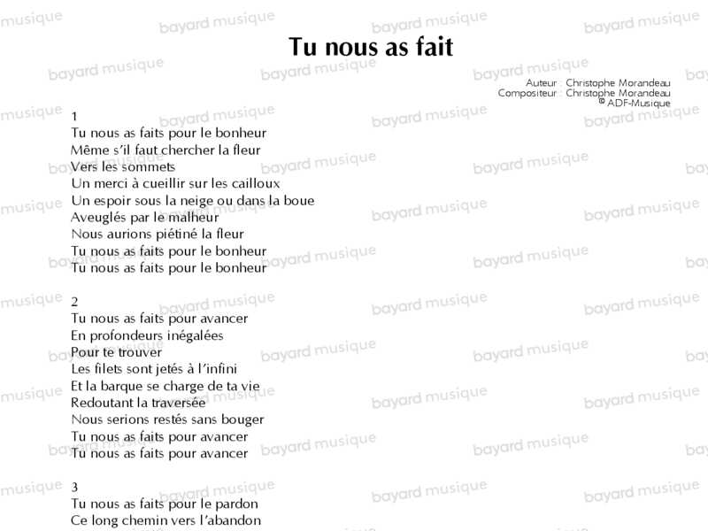 Interprété par Dominique Morandeau, Christophe Morandeau et le chœur ADF.