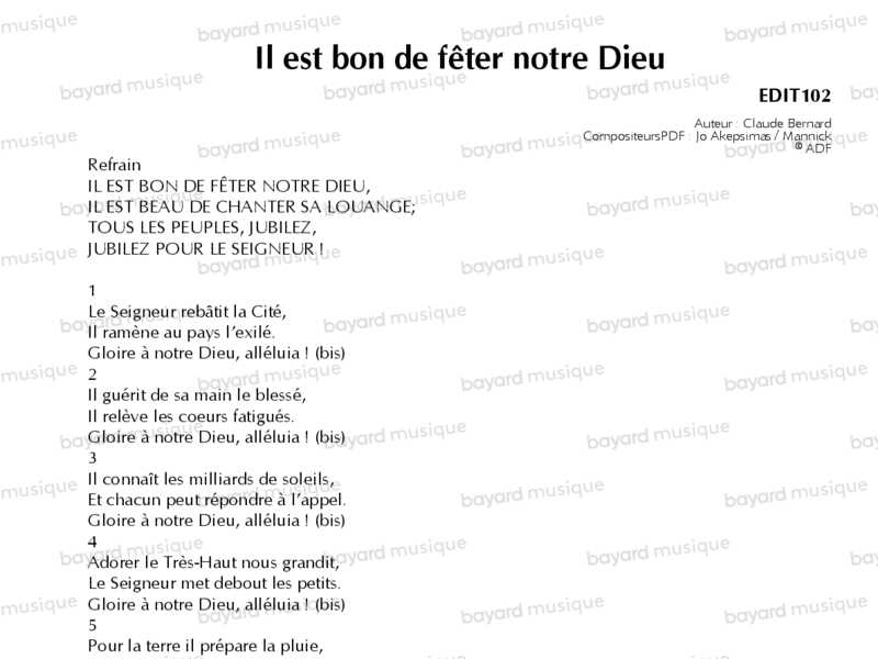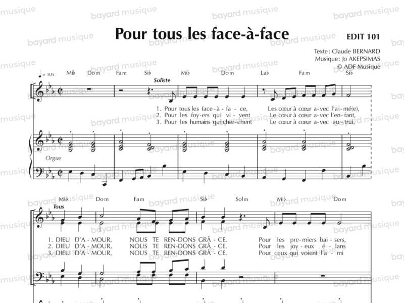 Interprété par l'ensemble vocal Dédicace, Mannick, Jo Akepsimas, Marie-Louise Valentin et Gaëtan de Courrèges.