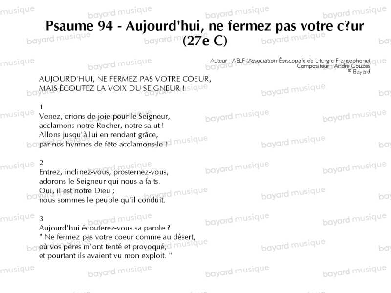 Psaume 94 - Aujourd’hui, ne fermez pas votre cœur (27e dimanche du temps ordinaire, année C)