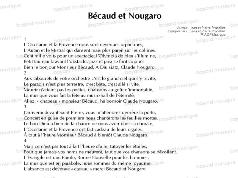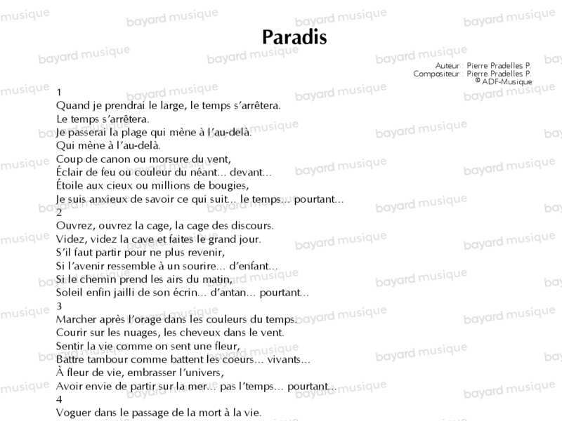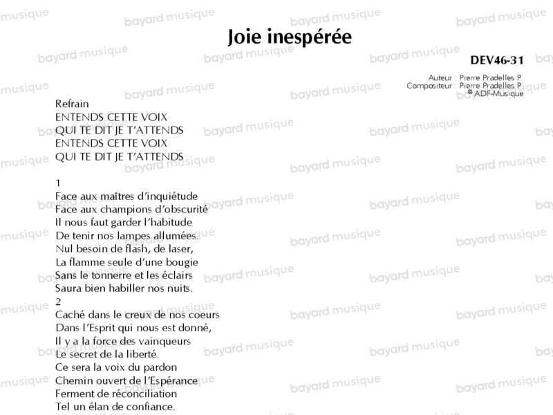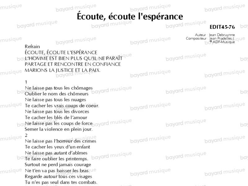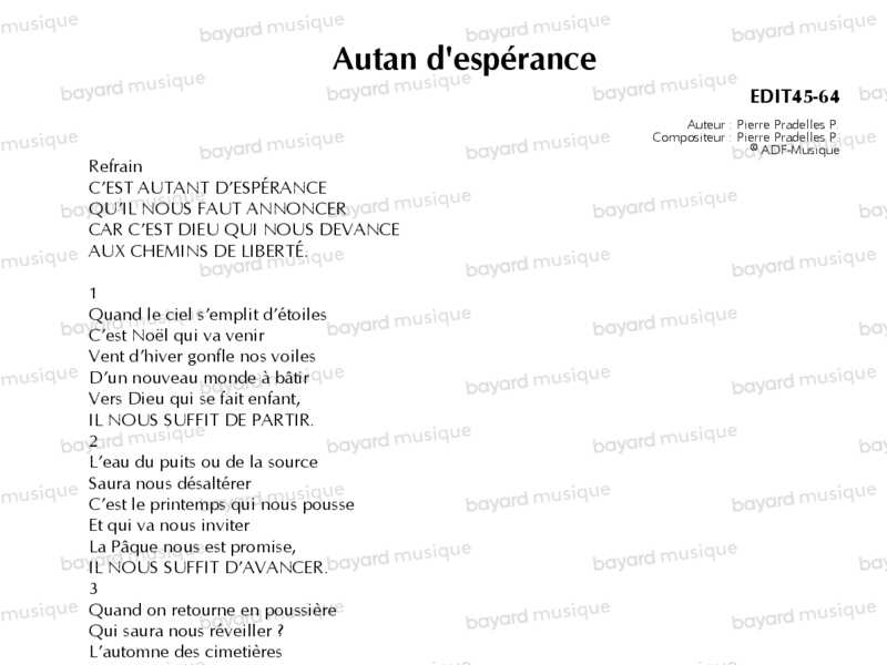 Interprété par Pierre Pradelles et l'ensemble vocal Dédicace.