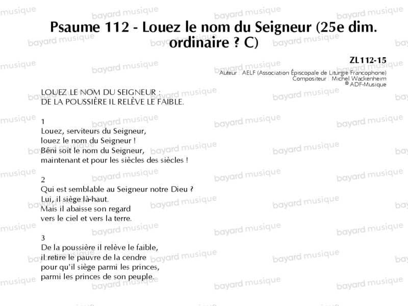 Psaume 112 - Louez le nom du Seigneur (25e dimanche du temps ordinaire, année C)
