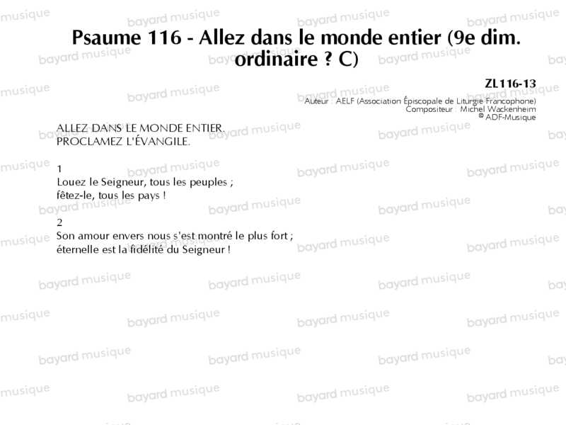 Psaume 116 - Allez dans le monde entier (9e dimanche du temps ordinaire, année C)