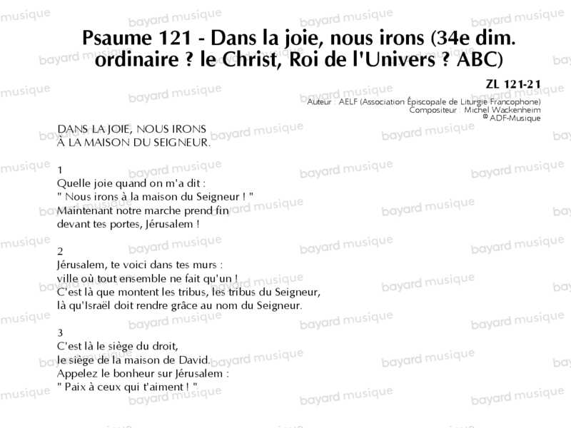 Psaume 121 - Dans la joie, nous irons (34e dimanche du temps ordinaire, année C)