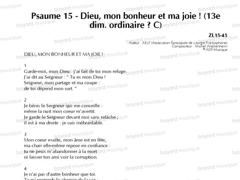 Psaume 15 - Dieu, mon bonheur et ma joie ! (13e dimanche du temps ordinaire, année C)