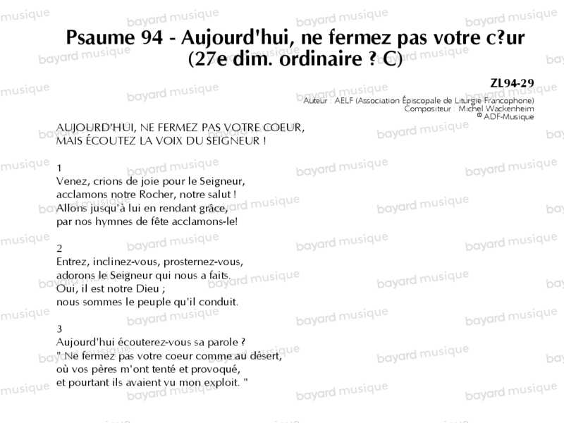 Psaume 94 - Aujourd'hui, ne fermez pas votre cœur (27e dimanche du temps ordinaire, année C)