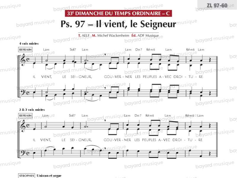 Psaume 97 - Il vient, le Seigneur (33e dimanche du temps ordinaire, année C)