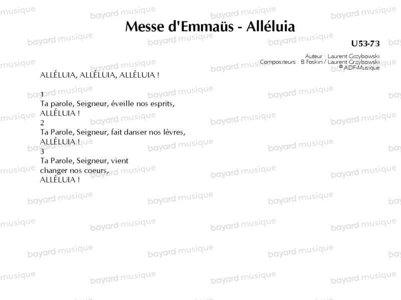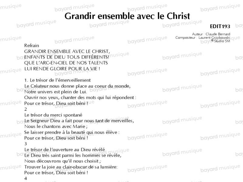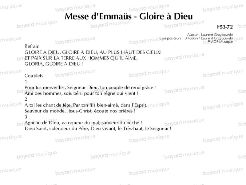 Interprété par Laurent Grzybowski et le chœur ADF-Bayard Musique. ATTENTION ! Ce chant est court.