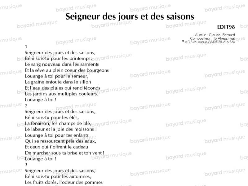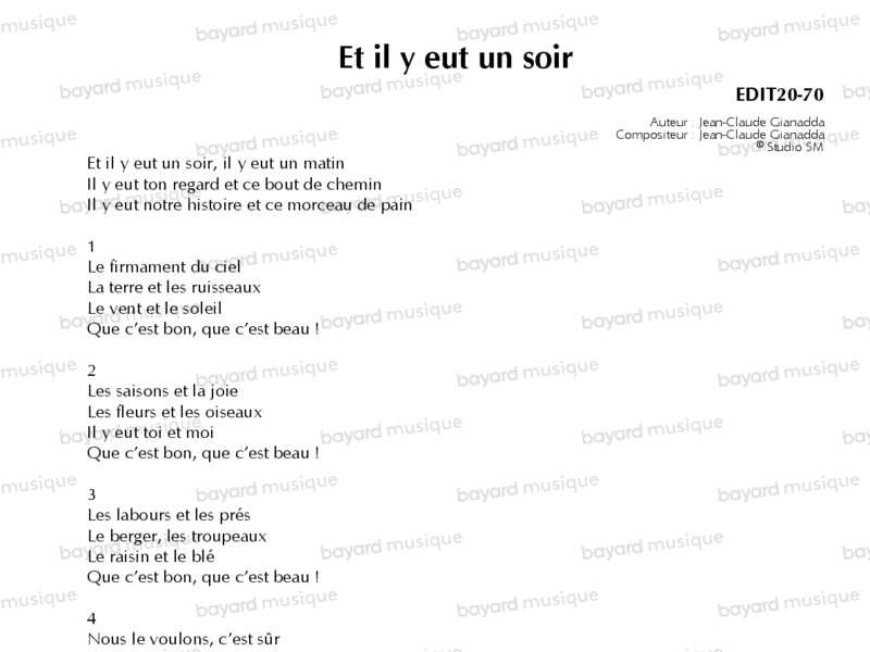 Interprété par l'ensemble vocal Dédicace, Mannick, Jo Akepsimas, Marie-Louise Valentin et Gaëtan de Courrèges.