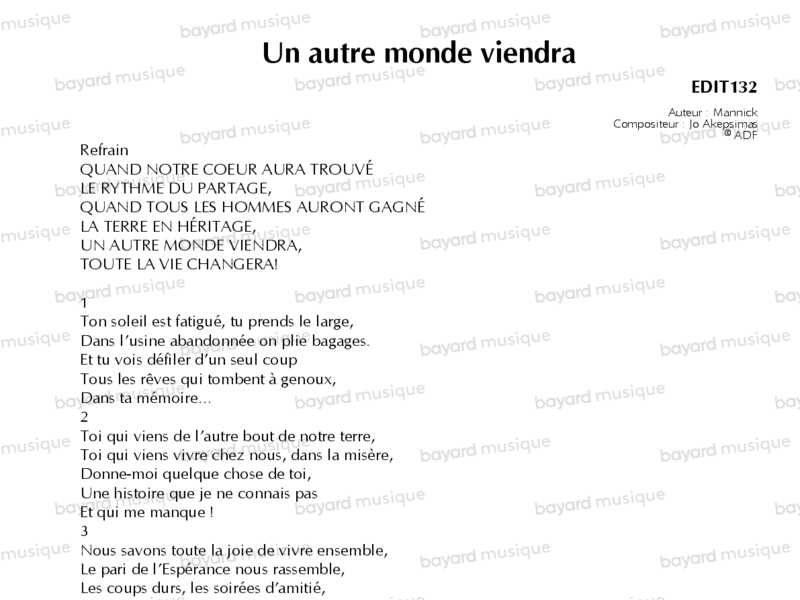 Album réalisé en collaboration avec l'Action Catholique Ouvrière. 11 chants qui se veulent être une marche de frères et un hymne pour l'homme.