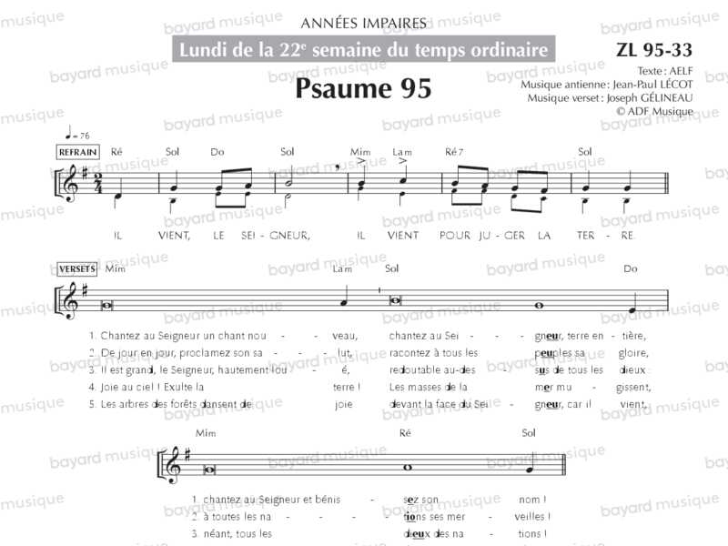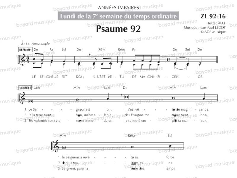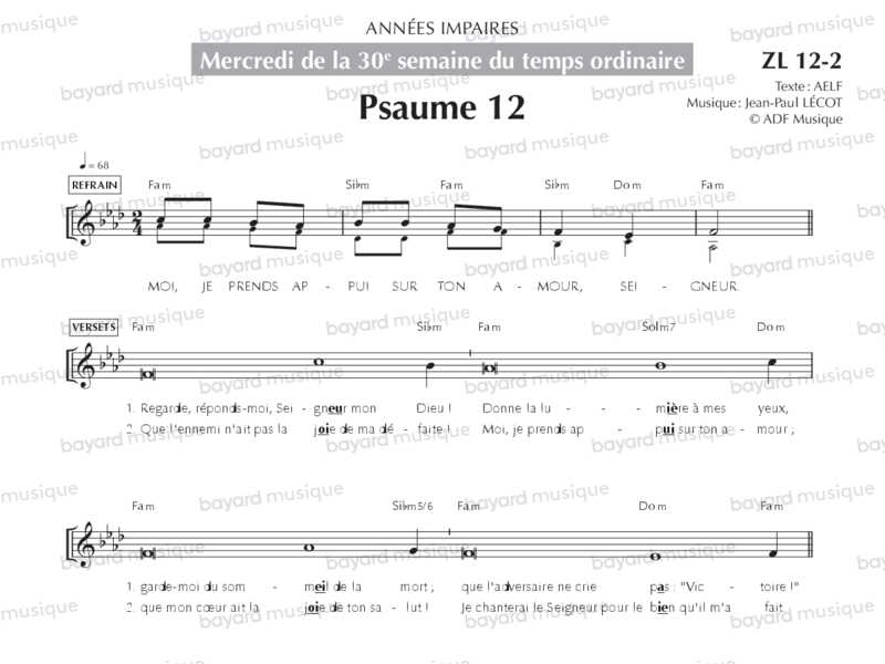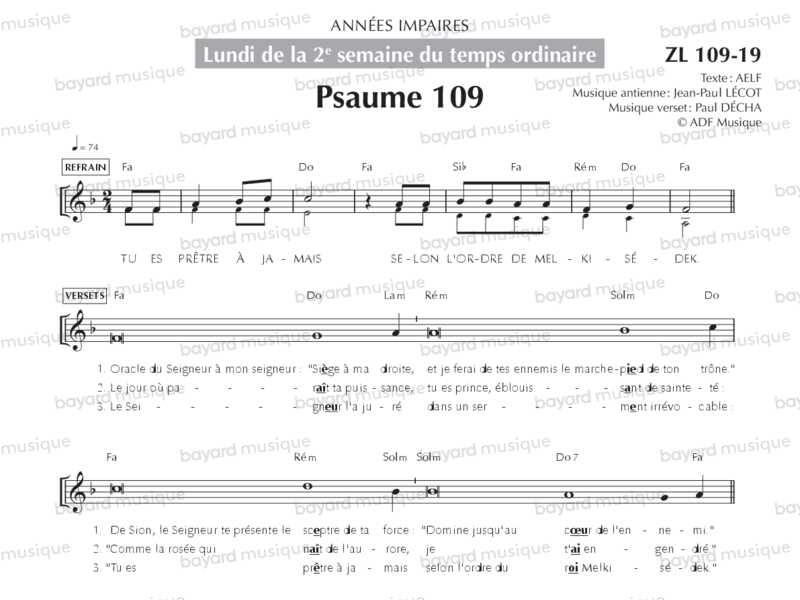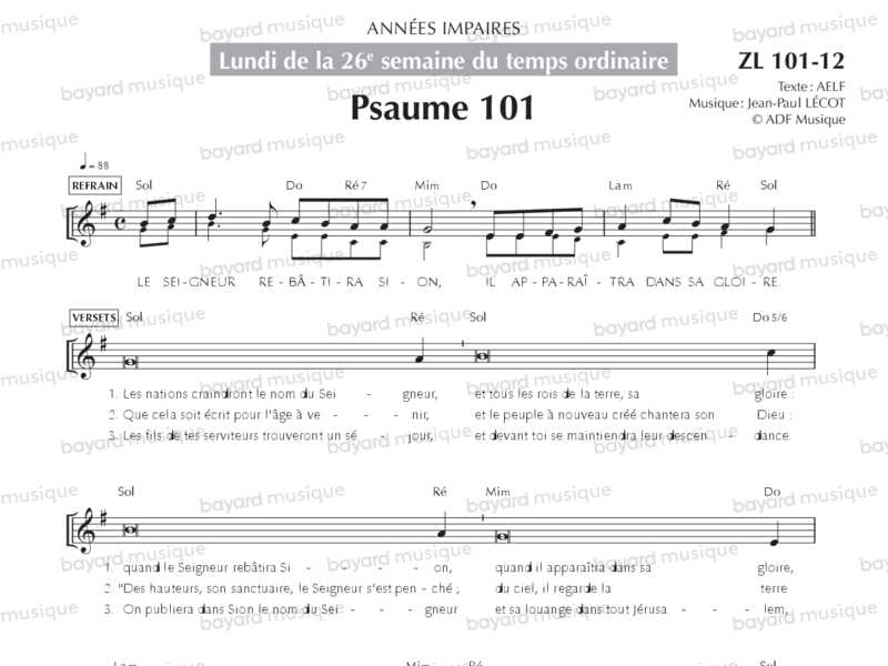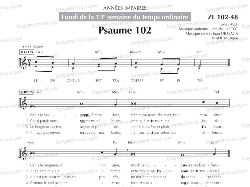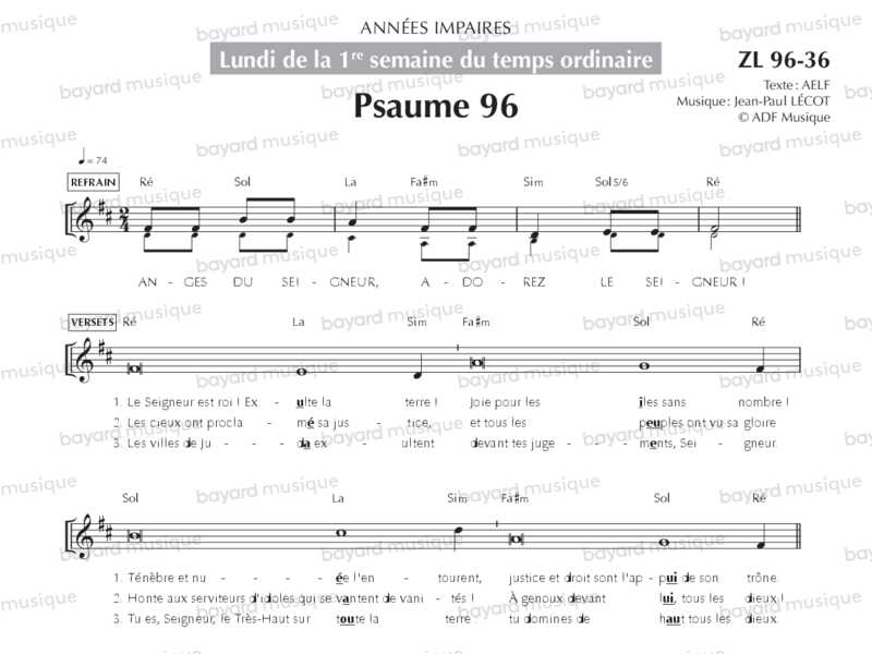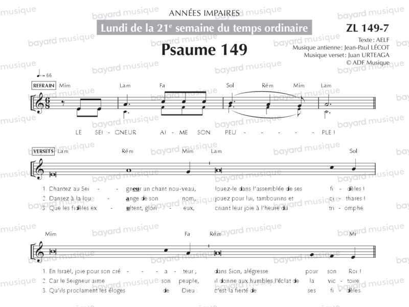 Les psaumes et acclamations des messes de semaine composés par Jean-Paul Lécot pour le temps ordinaire des années impaires.