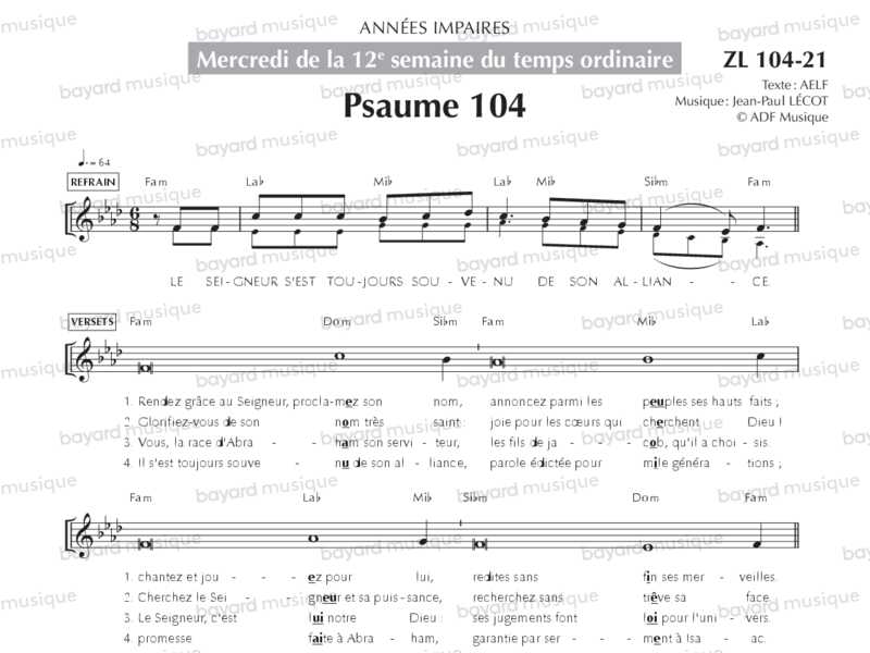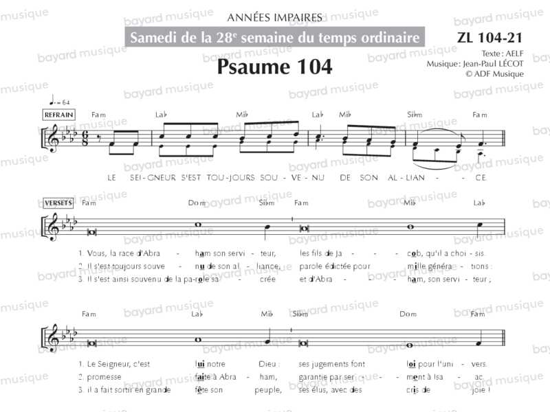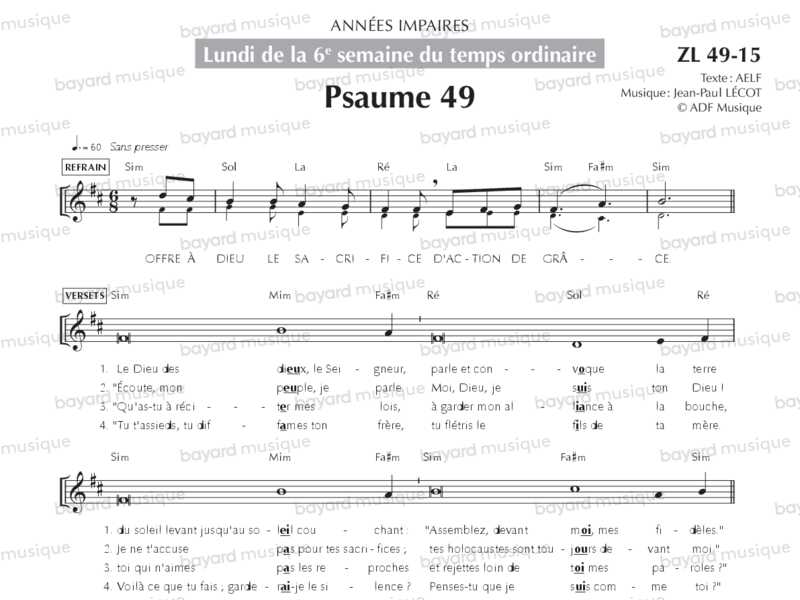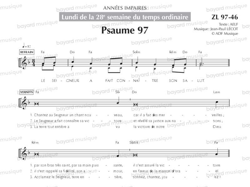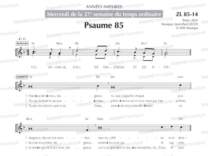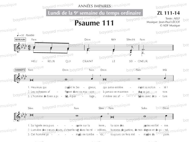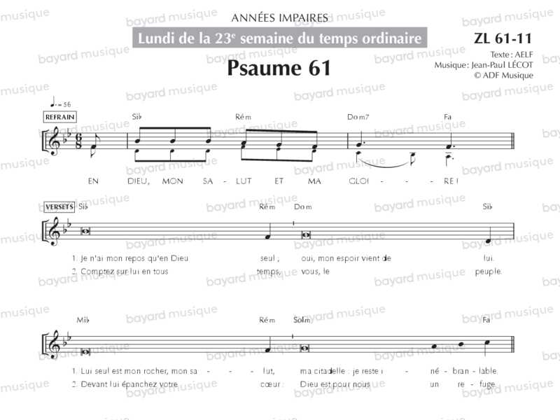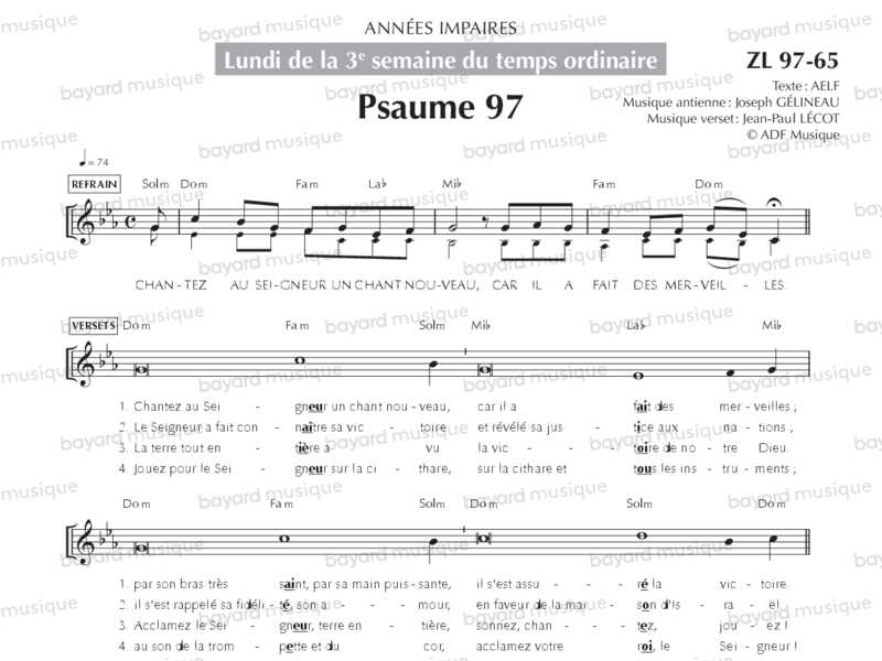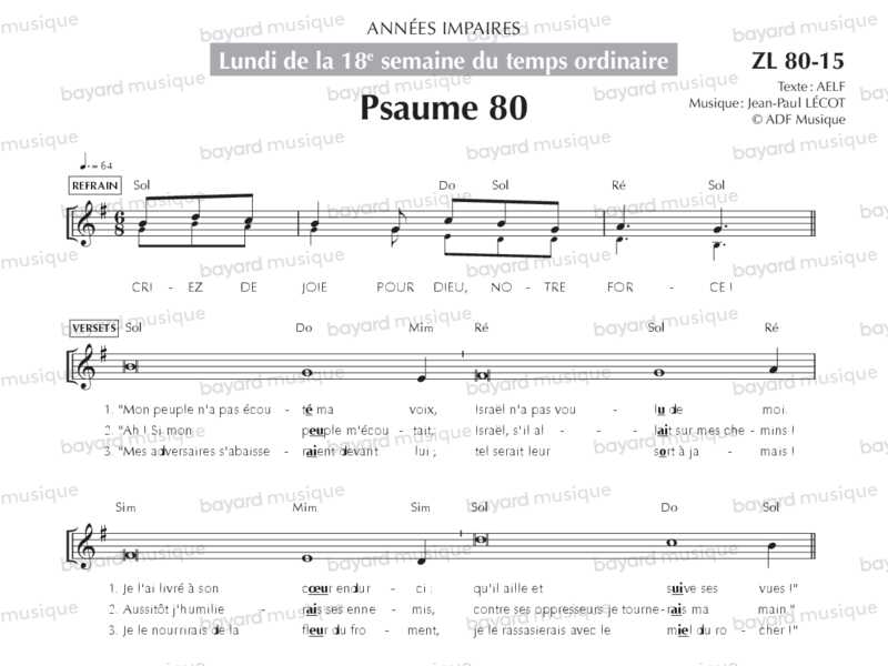 Les psaumes et acclamations des messes de semaine composés par Jean-Paul Lécot pour le temps ordinaire des années impaires.