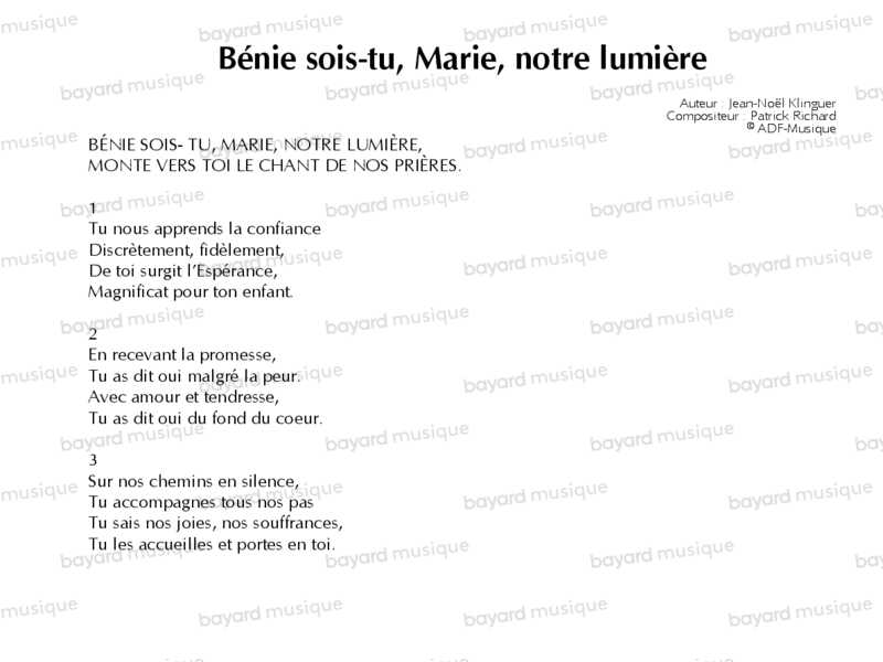 Après le succès de « Pour te chanter, Marie », Patrick Richard, Cécile et Jean-Noël Klinguer s’unissent à nouveau pour un album de chants de dévotion à Marie.