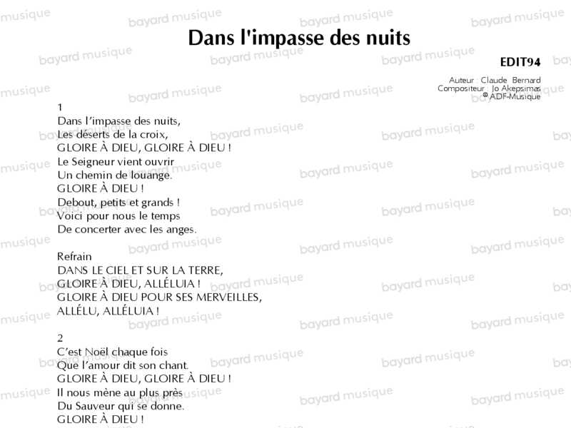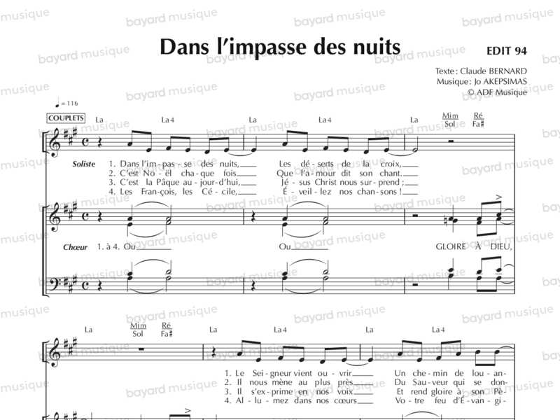Interprété par Béatrice Sépulchre, Jo Akepsimas et Le Jeune Chœur Liturgique.