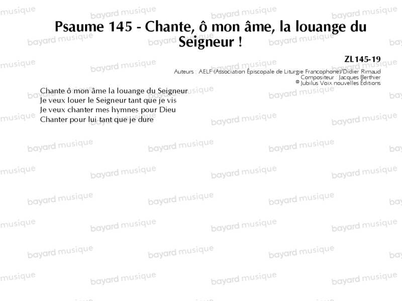 06. Psaume 145 - Chante, ô mon âme, la louange du Seigneur !