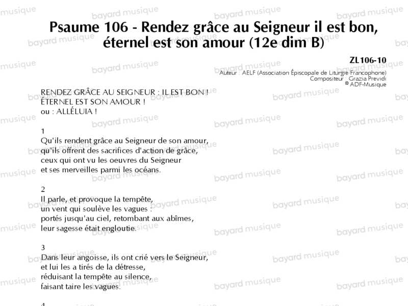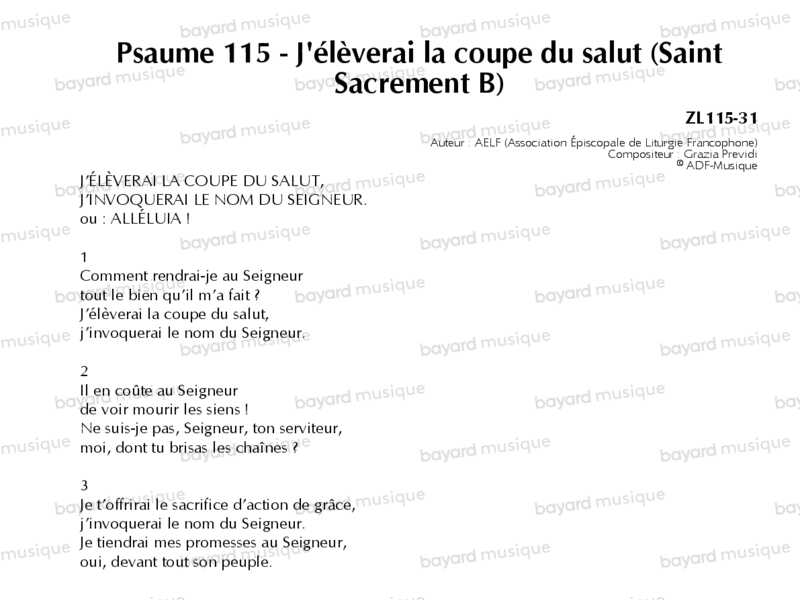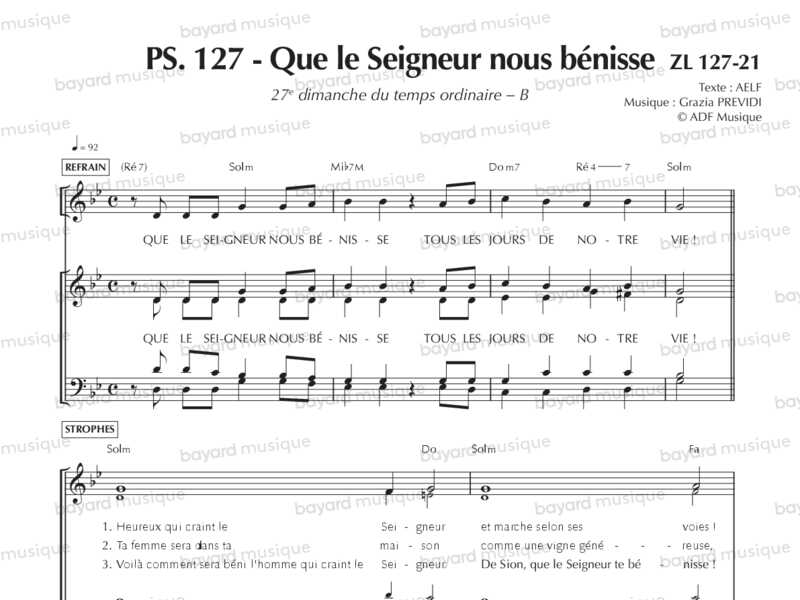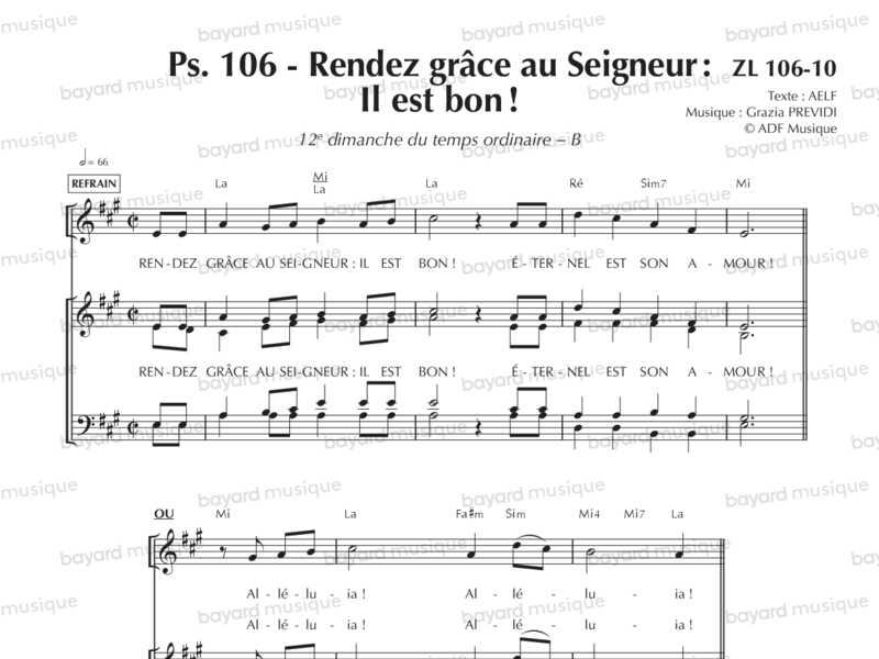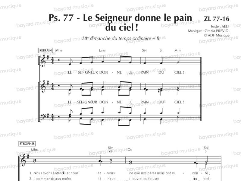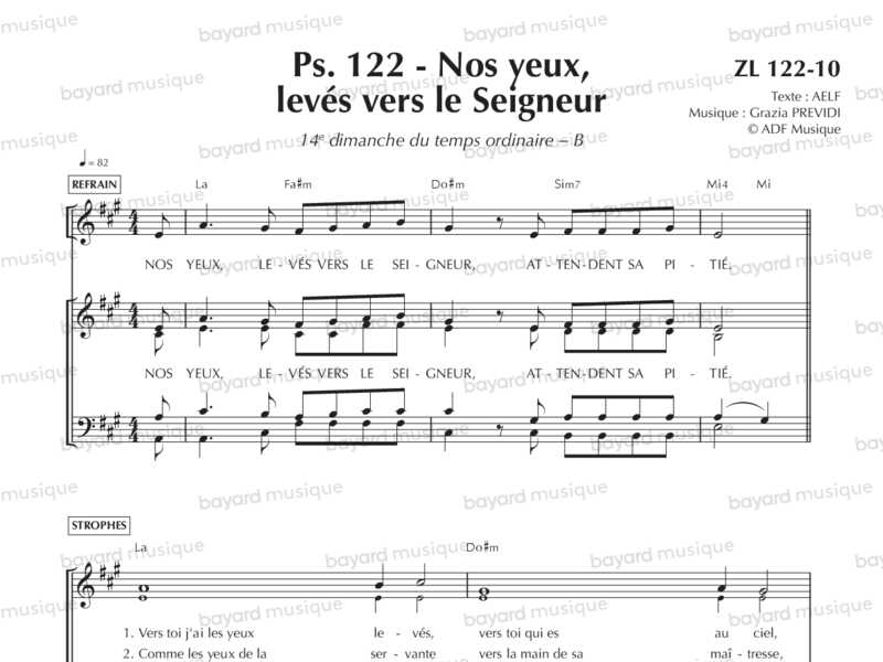 Comprend la partition pour le 2e dim. de l'Avent B, le 15e dim. du TO B et le 19e dim. du TO A