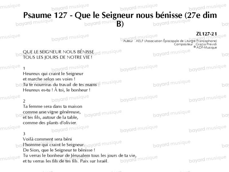 Psaume 127 - Que le Seigneur nous bénisse tous les jours de notre vie ! (27e dimanche du temps ordinaire, année B)
