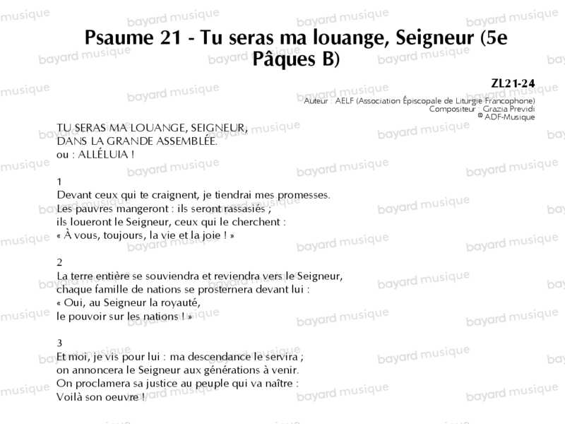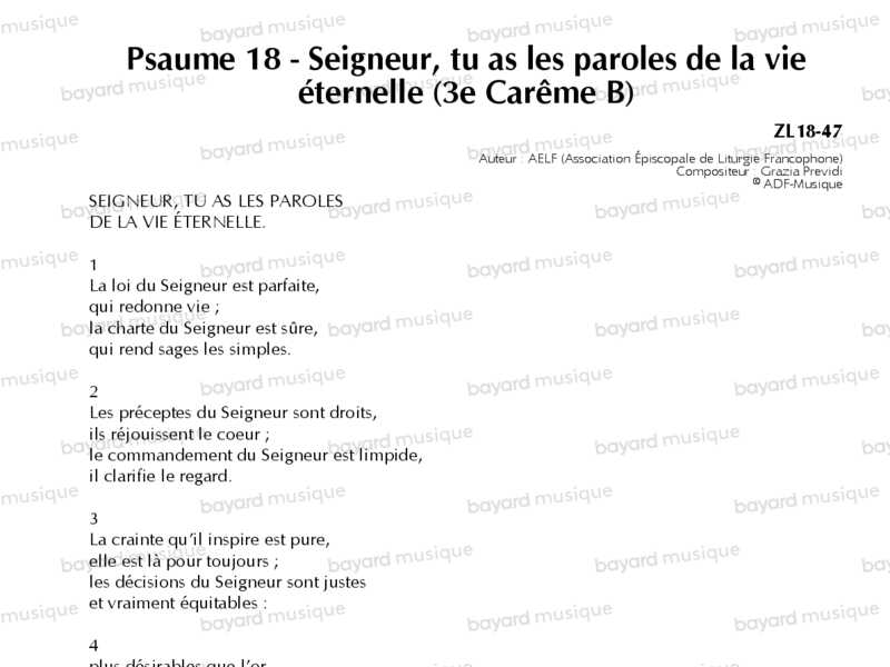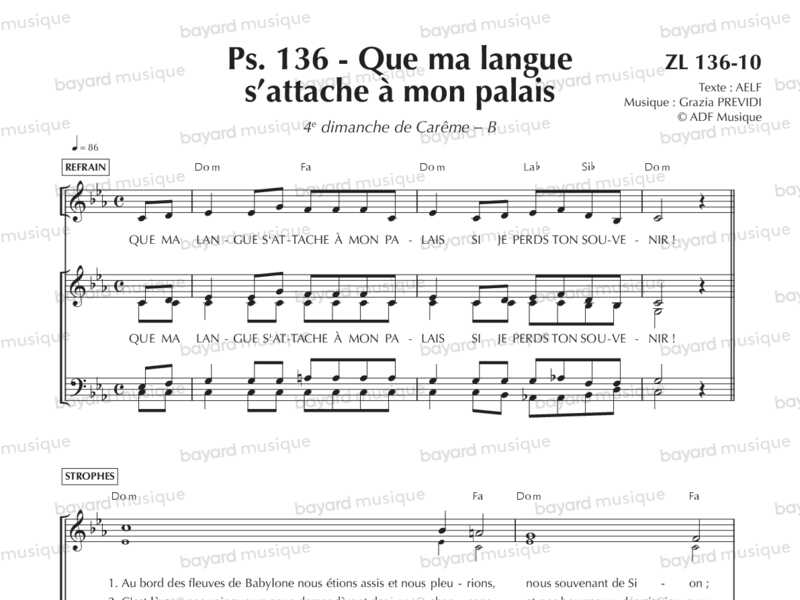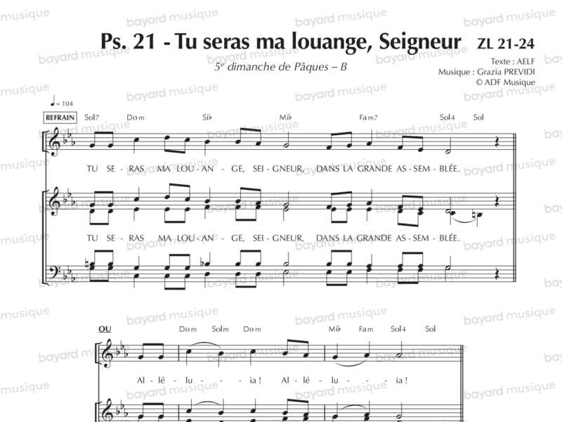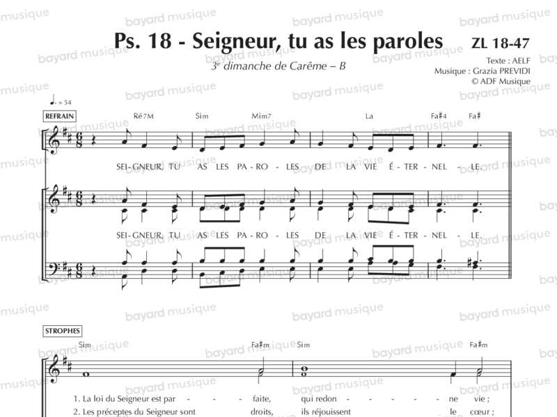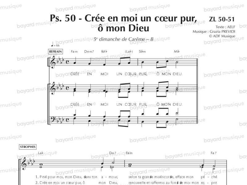 Comprend la partition pour le 2e dim. de Carême A, le 5e dim. de Pâques A et le 29e dim. du TO B