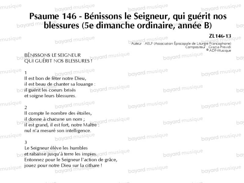 17. Psaume 146 - Bénissons le Seigneur, qui guérit nos blessures (5e dimanche du temps ordinaire, année B)