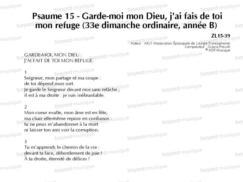 Psaume 15 - Garde-moi mon Dieu, j'ai fais de toi mon refuge (33e dimanche du temps ordinaire, année B)