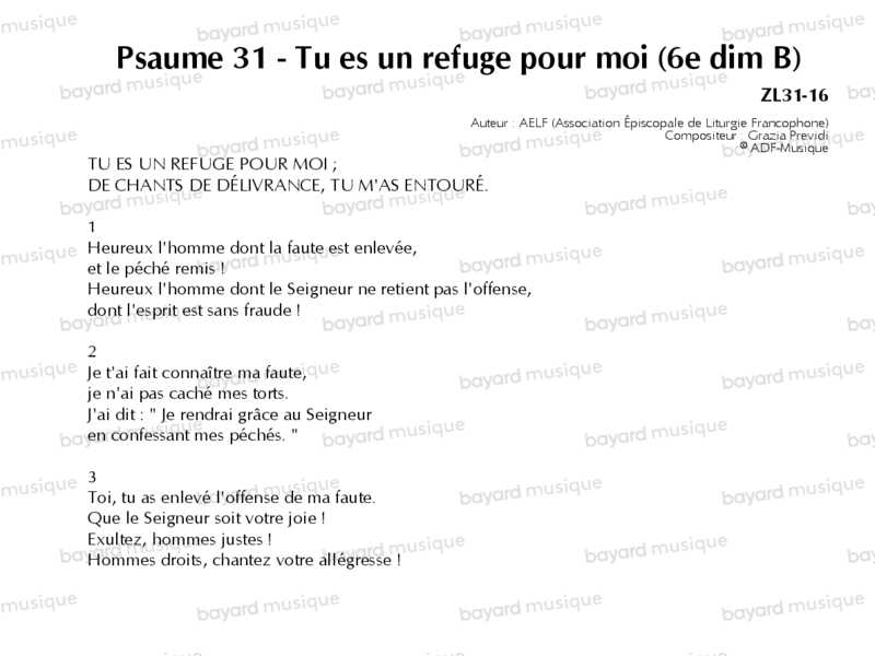 Psaume 31 - Tu es un refuge pour moi (6e dimanche du temps ordinaire, année B)