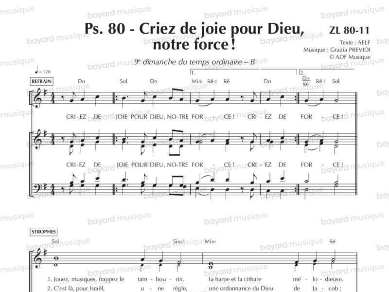 Comprend la partition pour le 30e dim. du TO B, le 2e dim. de l'Avent C et le 5e dim. de Carême C