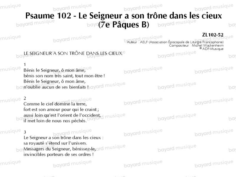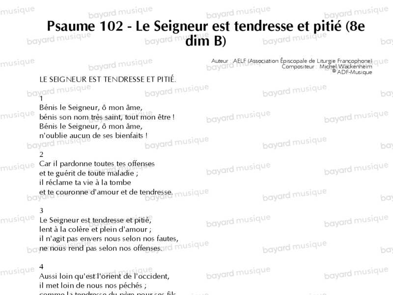Psaume 102 - Le Seigneur est tendresse et pitié (8e dimanche du temps ordinaire, année B)