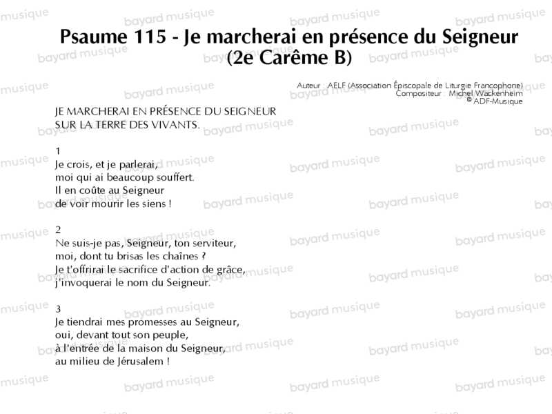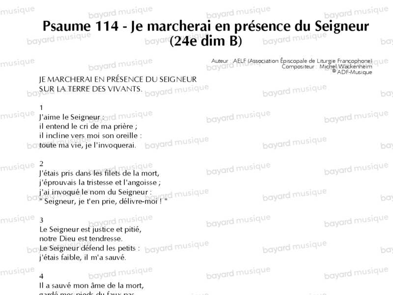 Psaume 114 - Je marcherai en présence du Seigneur (24e dimanche du temps ordinaire, année B)