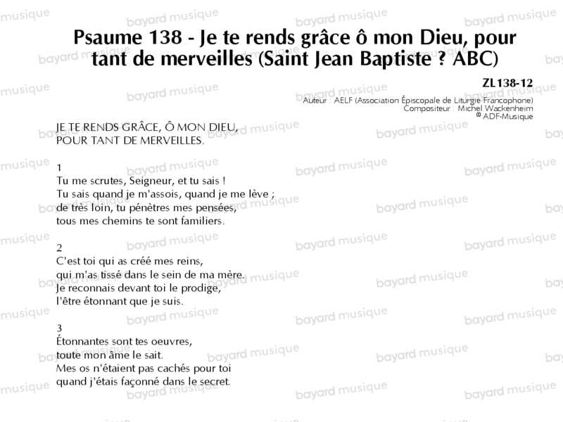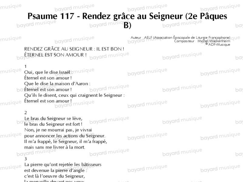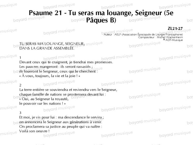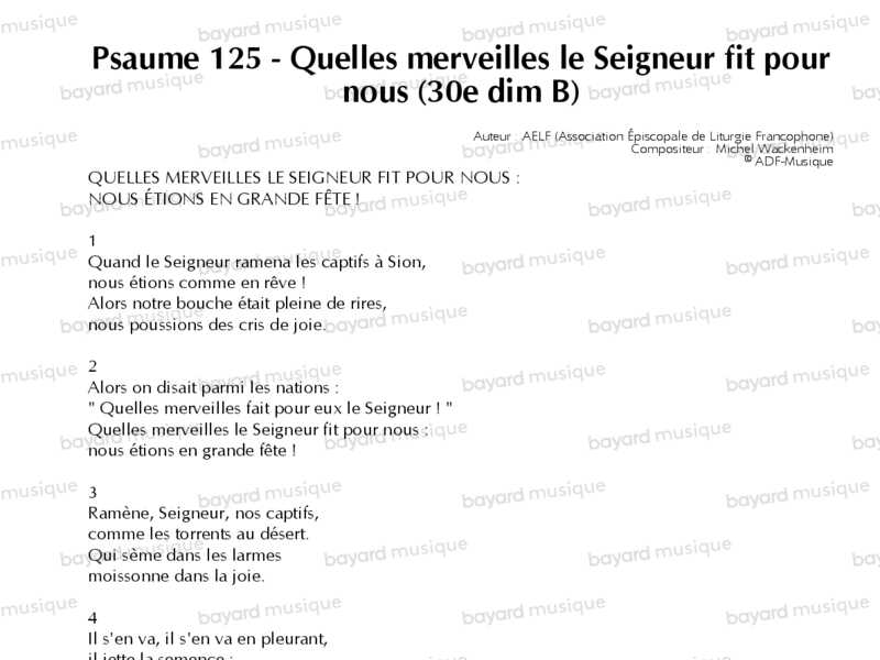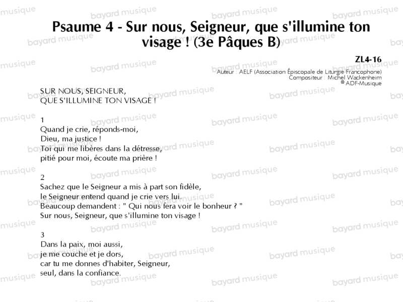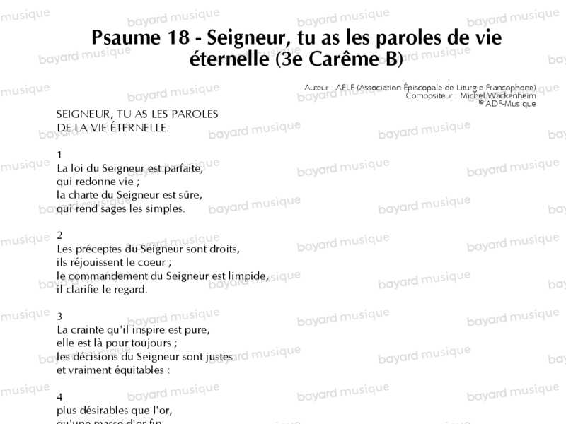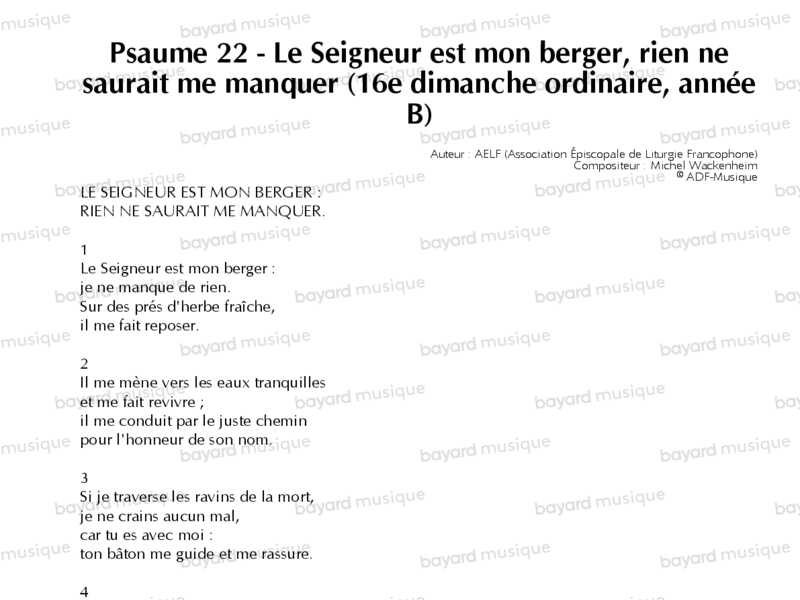 L'ensemble des psaumes pour les dimanches et fêtes de l'année B, mis en musique par Michel Wackenheim dans un style simple et chantant.