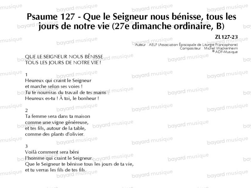Psaume 127 - Que le Seigneur nous bénisse (27e dimanche du temps ordinaire, année B)