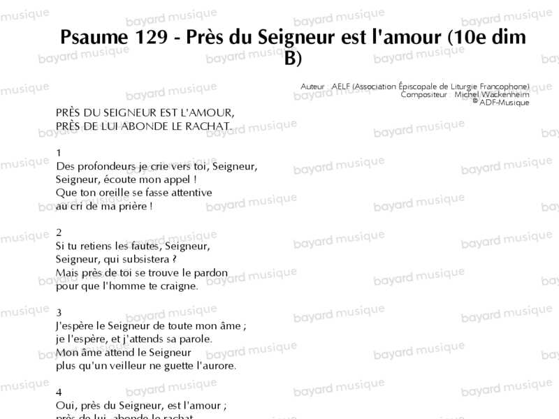 Psaume 129 - Près du Seigneur est l'amour (10e dimanche du temps ordinaire, année B)