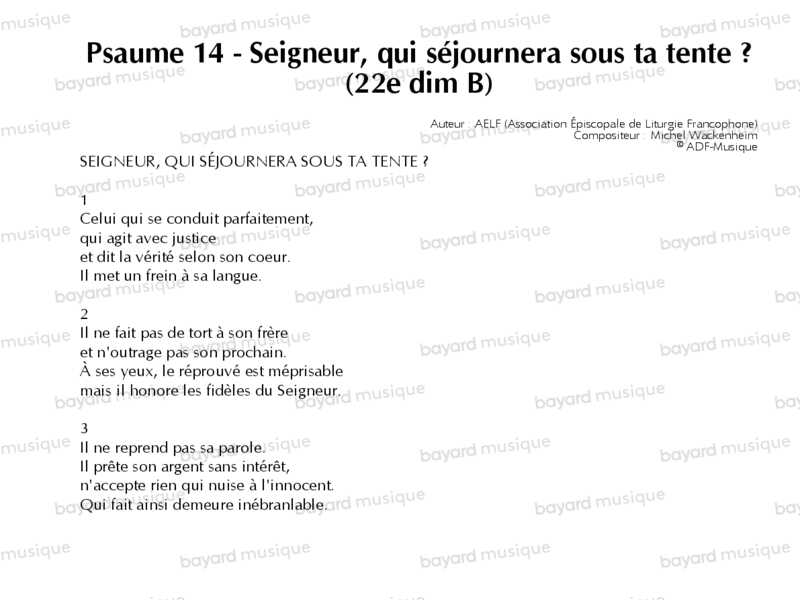 64. Psaume 14 - Seigneur, qui séjournera sous ta tente ? (22e dimanche du temps ordinaire, année B)