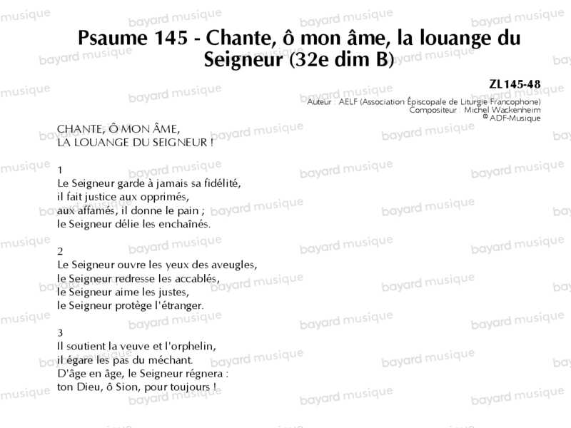 77. Psaume 145 - Chante, ô mon âme (32e dimanche du temps ordinaire, année B)
