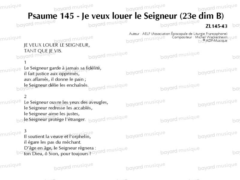 65. Psaume 145 - Je veux louer le Seigneur (23e dimanche du temps ordinaire, année B)