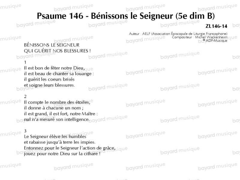 Psaume 146 - Bénissons le Seigneur (5e dimanche du temps ordinaire, année B)