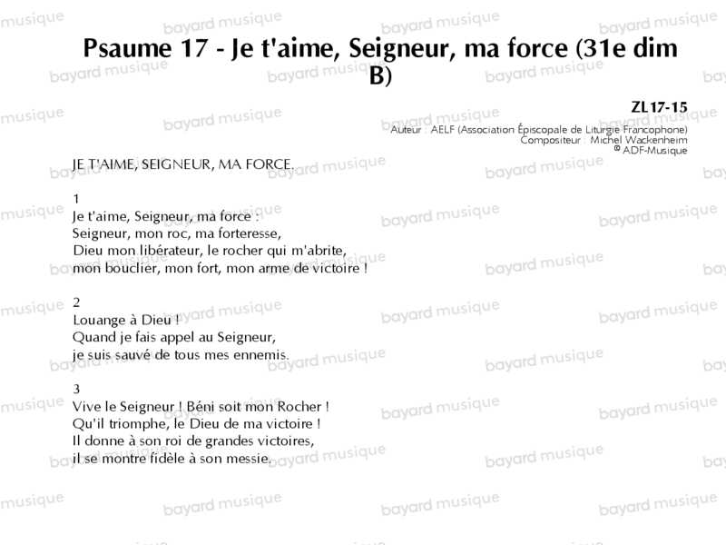 Psaume 17 - Je t'aime, Seigneur, ma force (31e dimanche du temps ordinaire, année B)