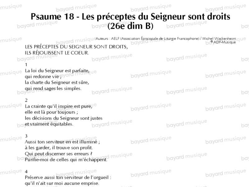 Psaume 18 - Les préceptes du Seigneur sont droits (26e dimanche du temps ordinaire, année B)